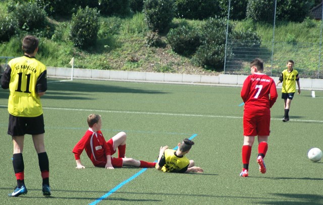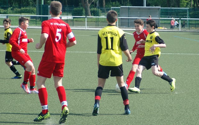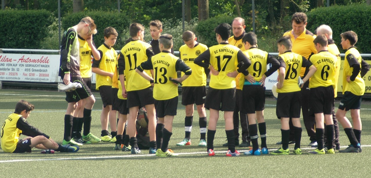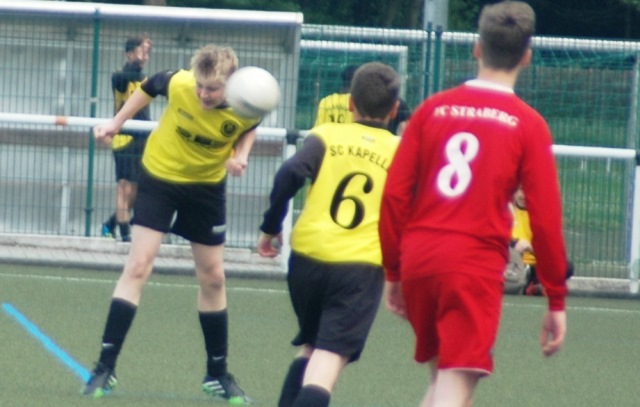 Jetzt nochmal kurz zurück zu den ersten zwei Spielen nach den Osterferien. Im ersten Auswärtsspiel besiegten die Jungs den sehr schwach spielenden SV Glehn mit einem klaren 0:3. Noch klarer wurde es im Heimspiel gegen den FC Straberg, den man mit einer 7:1 Klatsche wieder nach Hause schickte. Keiner der zwei Mannschaften schaffte es, die Jungs vom SC Kapellen vor größere Probleme zu stellen und die Gegenwehr der körperlich überlegenden Spieler aus Glehn und Straberg war erschreckend schwindend. Aber auch die besondere Aufstellung, bzw. das System der Trainer trägt dazu bei, dass die kapellener Spieler, jeden Gegner auf Augenhöhe begegnen. Man darf gespannt sein, ob es auch am kommenden Mittwoch im Heimspiel gegen den SV Rosellen mit diesem System weiter Bergauf geht. Ich drücke euch die Daumen und wünsche euch weiterhin viel Erfolg.