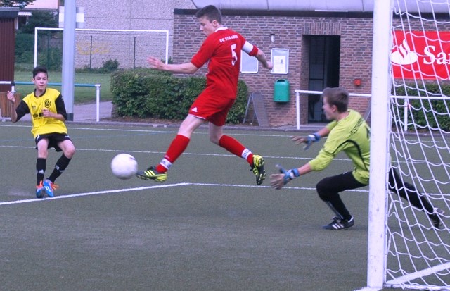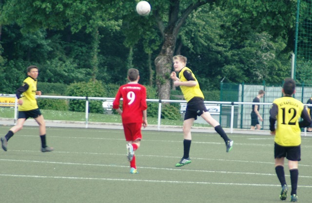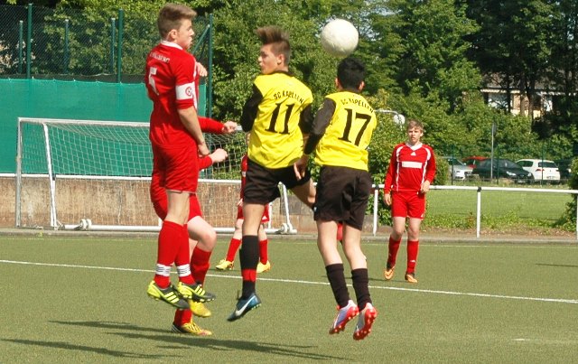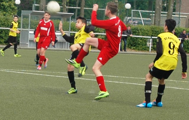 Der jüngere 2000er Jahrgang des SC Kapellen-Erft, mischt die Kreisleistungsklasse der CI Jahrgang 1999 weiter auf. Mit zwei Siegen in Folge, verteidigen sie den 1. Platz und stehen mit einem Punkt vor dem SG Kaarst. Beide Mannschaften spielen um den Meistertitel in dieser Saison 2013/2014 und treffen im vorletzten Spiel sogar noch aufeinander. Hier wird in den letzten vier Meisterschaftsspielen auf beiden Seiten gezittert und nur das hält die Spannung in dieser Gruppe hoch. Da der 3. Platz mit neun Punkten Rückstand auf den 1. Platz nur noch theoretisch ein Titelkandidat ist, werden es wohl der SG Kaarst und der SC Kapellen unter sich entscheiden und beide hätten es verdient. Sollten die nächsten zwei Spiele beider Mannschaften gewonnen werden, dann gibt es am 17.05.2014 um 14:30 Uhr das Entscheidungsspiel in Kapellen. Hier hoffen dann die Spieler und Trainer des SC Kapellen auf eine lautstarke Unterstützung vieler kapellener Fans, Eltern, Freunde und Verwandte, damit es keine Niederlage wie im Hinspiel, sondern ein Sieg im heimischen Stadion zu feiern gibt. Also liebe Fans, jetzt den Termin direkt in den Kalender eintragen und zahlreich erscheinen…;o). Bis dahin, halte ich Alle auf dem Laufenden, ob es überhaupt zu einem Showdown kommen wird.