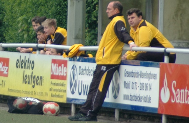 Trainer Friedhelm Schmitz, Co-Trainer Arnold Gaida und Torwarttrainer und Betreuer Peter Spitzkat